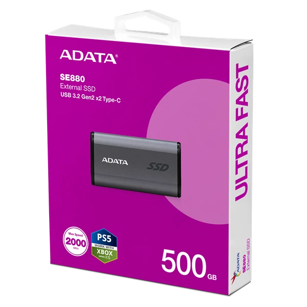 ADATA SSD Külső USB 3.2 500GB SE880 Elite, Szürke